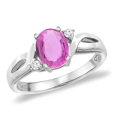 14k White Gold Diamond Natural Pink Sapphire Engagement Ring