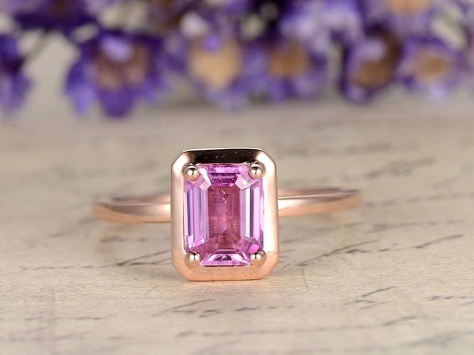 Amazon Com Pink Sapphire Engagement Ring 5x7mm Emerald Cut