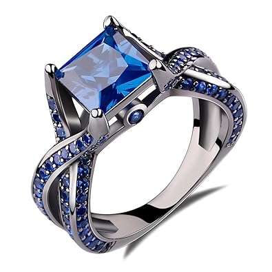 Caperci 2 0ct Princess Cut Created Blue Sapphire Engagement Ring 14k Black Gold Plating Sterling Silver 925 Ring